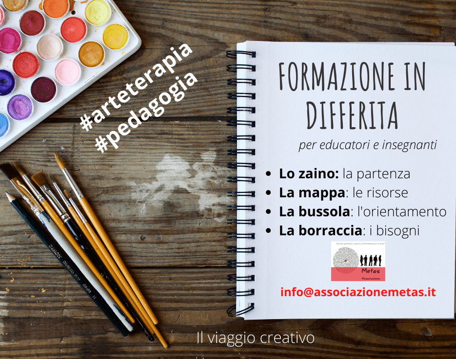 | A settembre è cominciato un nuovo cammino e gli educatori e gli insegnanti lo sanno bene. Chi si occupa di un lavoro educativo nelle scuole ma anche nei servizi educativi, sociali o sanitari sa che il normale viaggio che intraprendiamo magari da anni nello stesso servizio, quest’anno sarà su un sentiero che è oggettivamente un po’ più in salita del solito. Per questo collaboro con Associazione Metas con la quale abbiamo provato ad allargare lo sguardo oltre a noi per capire se quello che sentivamo noi era diffuso. Abbiamo raccolto molte impressioni e riflessioni, preoccupazioni e incertezze che per il viaggio scomodo e irto che stiamo facendo. Abbiamo allora pensato che ci vuole un buon equipaggiamento per attraversare questo anno. Lo zaino è lì che ci aspetta, ma cosa ci mettiamo dentro quest’anno? Quali competenze? Quali abilità? Quali sono i bisogni essenziali che abbiamo? Ma anche quali sogni e passioni personali? E quale mappa seguiremo? È possibile avere almeno una bussola per questa navigazione? Non è facile rispondere a queste domande vero? No non lo è perché non sempre le risposte arrivano dalla mente razionale e cognitiva, quella che mettiamo al primo posto in tutto, e una domanda si è fatta sempre più strada in questi mesi: siamo sicuri che dobbiamo sempre sapere tutto prima? E’ possibile anche ora, stare in ciò che accade con quello che siamo e sappiamo fare? Ma allora chi conosce le risposte a queste domande importanti? Dove trovarle? Ci sono luoghi dentro di noi che le risposte le hanno già e che vanno semplicemente contattati per poterle ricevere. Come fare? Da maggio 2020 stiamo integrando arteterapia e pedagogia in incontri che permettono di centrare il proprio ruolo professionale attraverso delle esperienze pratiche e creative, rilette alla luce della necessità di capire come portiamo questi nostri saperi nel nostro lavoro. Da questo percorso nasce IL VIAGGIO CREATIVO, una formazione online pensata per educatori ed insegnanti che vogliano prendersi cura di loro stessi per abitare meglio il proprio ruolo professionale. |